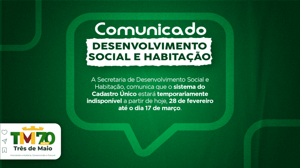 Secretaria de Desenvolvimento Social e Habitação de Três de Maio traz informação importante!