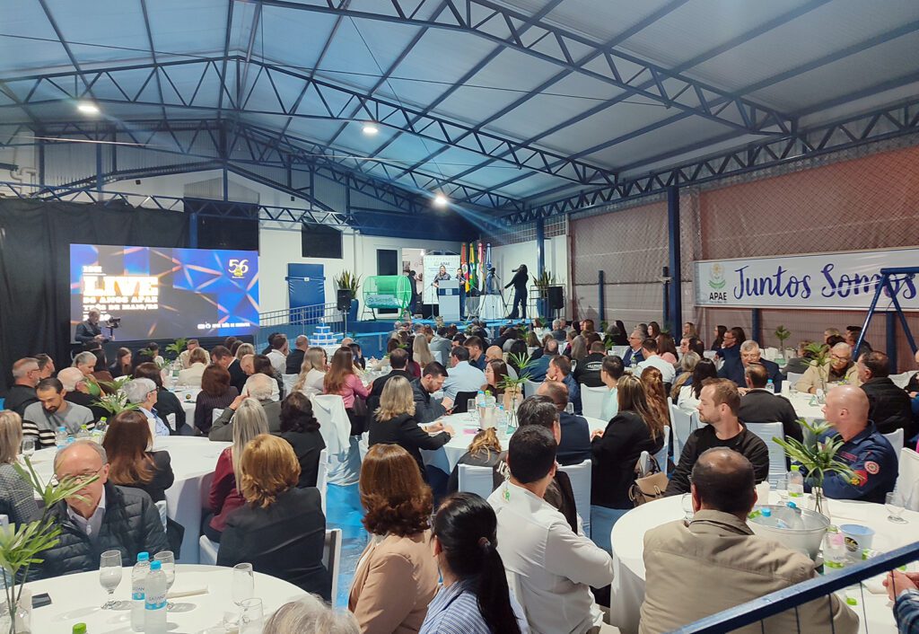 Na noite de quarta-feira, 29 de outubro, a Apae de Três de Maio reuniu convidados para celebrar 56 anos de história. Autoridades, lideranças, imprensa, fundadores, ex-presidentes, voluntários, diretoria, colaboradores, empresários e amigos participaram do evento, que comemorou a trajetória da instituição e que contou com dois importantes lançamentos.